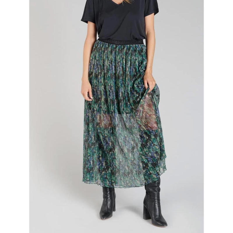Jupe midi ayleen effet pailleté vert femme - Le Temps Des Cerises