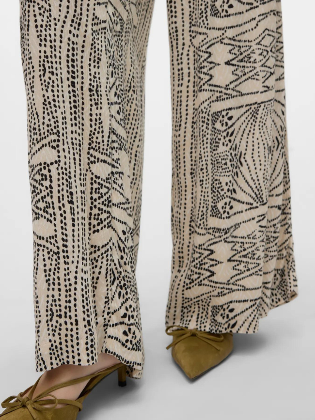 Pantalon large imprimé menny beige femme - Vero Moda