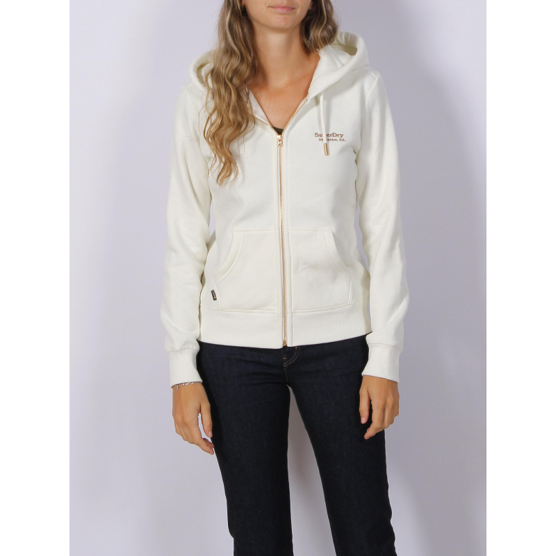 Sweat à capuche zippé essential logo crème femme - Superdry