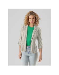 Veste blazer rayée en lin loose milo beige femme - Vero Moda